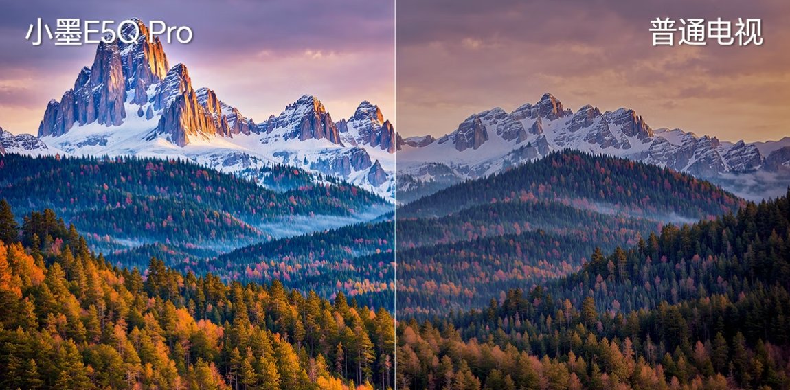 百吋小墨E5Q Pro拥有1248高分区和2800nits峰值亮度,搭载全新U+Mini LED光晕控制系统,做到画面亮的地方不过曝,暗处细节更清晰,看悬疑电影层次直接拉满。