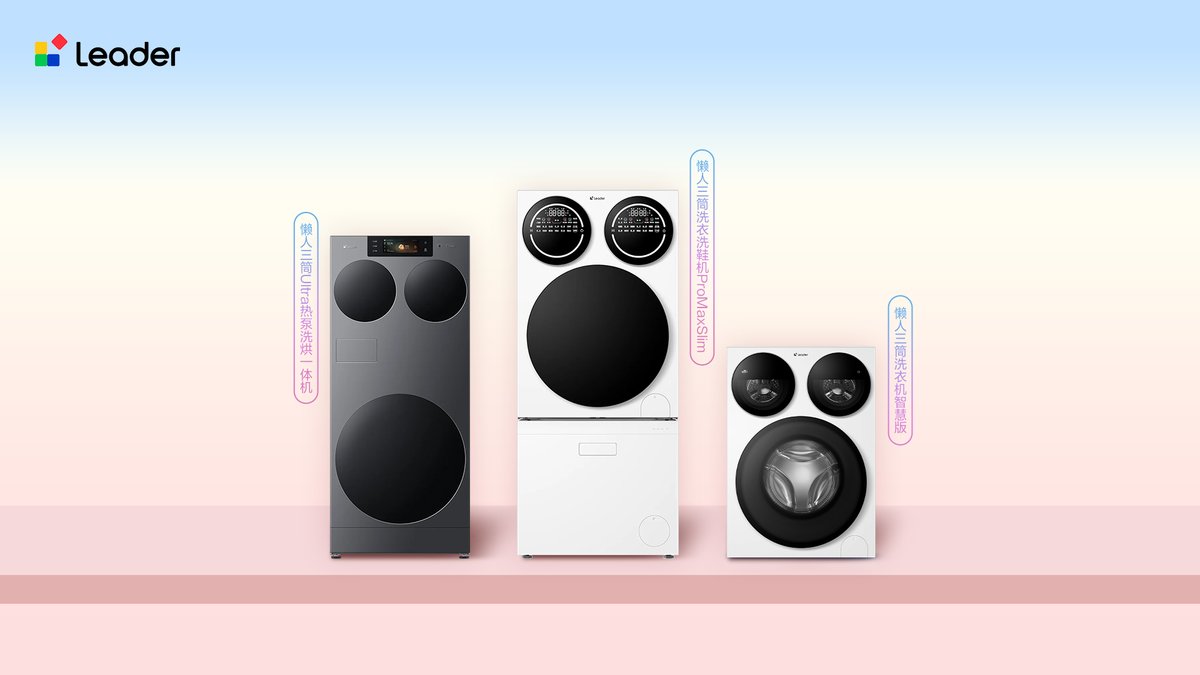 2026年,Leader统帅“懒人洗”家族再添3款新品,持续丰富智慧洗护场景:懒人三筒Ultra热泵洗烘一体机加入了热泵洗烘功能,最快不到1小时就能洗净烘干;懒人三筒洗衣机智慧版能够通过NFC“贴贴洗”快速启动程序,一屏控制三筒;支持平嵌的懒人三筒洗衣洗鞋机ProMaxSlim可以将洗衣机、洗鞋机完全嵌入橱柜,提升家居秩序感。值得一提的是,4月20日刚刚发布的三筒智慧版新品,首发28小时已成交超20000台。