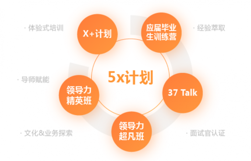 三七互娱学习发展中心建立了完善的学习管理系统和系统化课程体系,并培养了一支高素质的内部讲师队伍。5X人才发展计划由五大子计划组成,命名均以"X"为符号——寓意无限可能与持续突破: