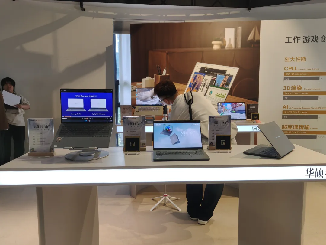 现场展示的三款新品——灵耀 14 Air 骁龙版、灵耀 16 Air 骁龙版,以及 ProArt 创 X,表面上是三款不同的笔记本,本质上则更像是 AI PC 时代的三种答案。
