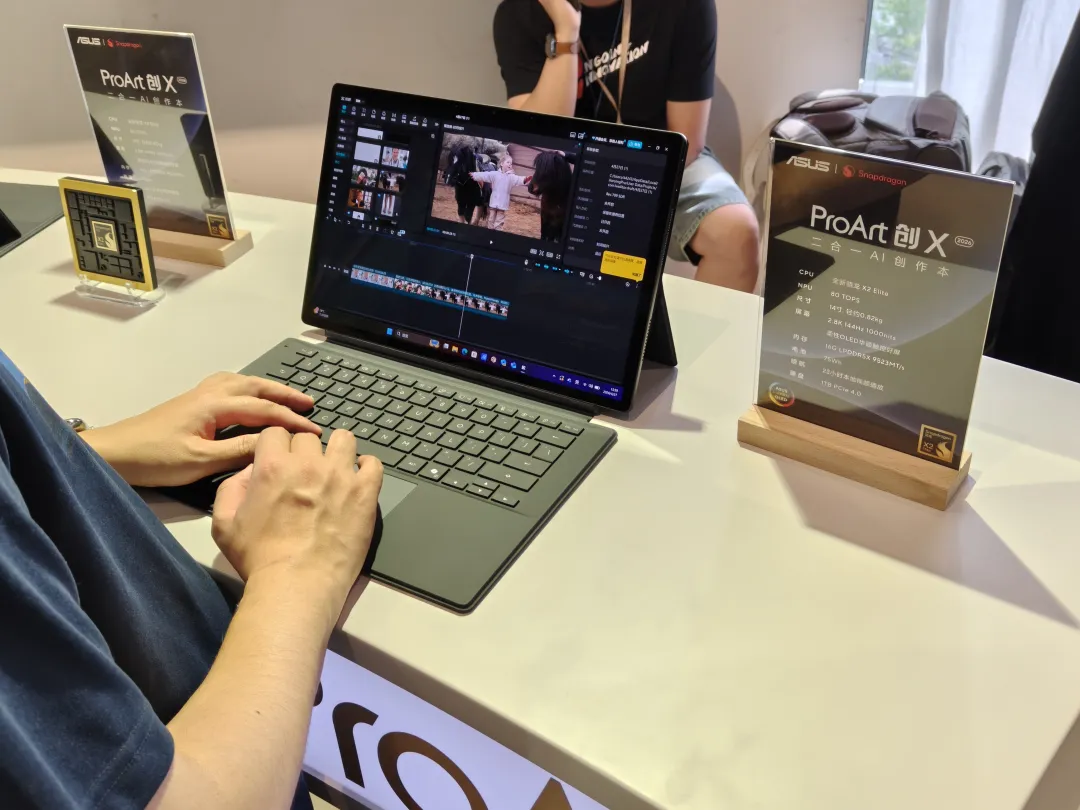 采访中,华硕给出的解释也很直接。骁龙平台的高能效比,让这种极薄机身下的多形态产品成为可能,而 ProArt 创 X 本质上是为了覆盖更多场景——办公、创作、户外使用,都可以切换。