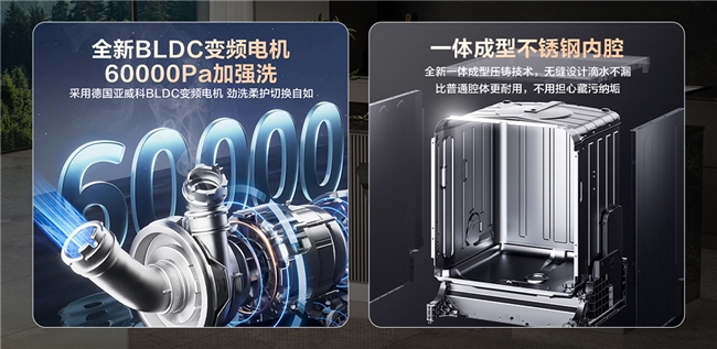 海信零菌洗碗机大薄荷系列C507iPro从耐用性出发,搭载德国亚威科变频电机,连续运行6000小时无故障,动力更强劲、稳定性更高,在高强度频繁使用下依旧保持澎湃洁净力。同时,海信零菌洗碗机大薄荷系列C507iPro采用一体折弯全不锈钢内胆设计,彻底告别传统胶条拼接结构。许多洗碗机为了防漏,会在内胆接缝处使用密封胶条,但胶条在高温高湿的环境下容易老化、变形、甚至释放异味,这是用户投诉的高频问题。而一体折弯全不锈钢内胆设计,不仅提升了整体密封性与抗腐蚀性能,也从源头上消除了异味隐患。