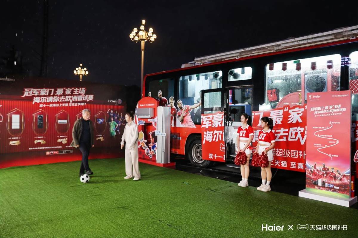 线下场景重构消费空间:长沙、北京等地铁站内,海尔与利物浦、巴黎圣日耳曼联合打造的创意海报,成为早晚高峰汹涌人流中的「视觉焦点」;在长沙,承载冠军单品的冠军球队大巴穿梭于各大热门景点,成为移动的风景线。当消费者行走在被海尔品牌视觉包围的地铁通道,或是偶遇穿梭于城市中心的冠军大巴时,品牌已然从家电卖场走进了消费者的生活空间。