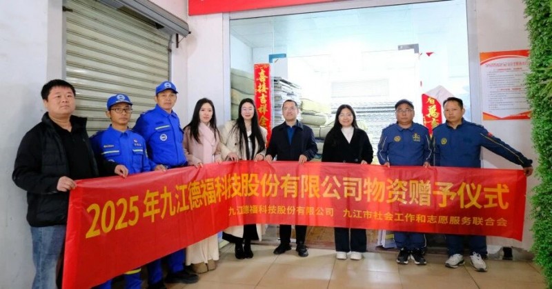 12月5日,正值第40个国际志愿者日,九江德福科技股份有限公司(以下简称“德福科技”)向九江市社会工作和志愿服务联合会开展爱心物资捐赠活动,以企业力量传递温暖,助力九江市困难群体生活改善,为志愿服务事业发展注入坚实动力,用实际行动诠释“奉献、友爱、互助、进步”的志愿精神。