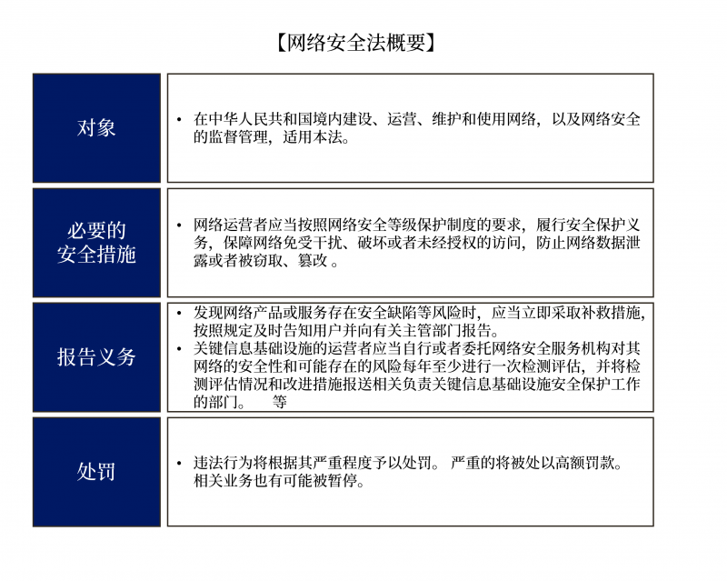 概要为应对日益增长的网络安全威胁及随之而来的复杂网络与系统管理需求,《网络安全法》自2017年6月1日起正式施行。