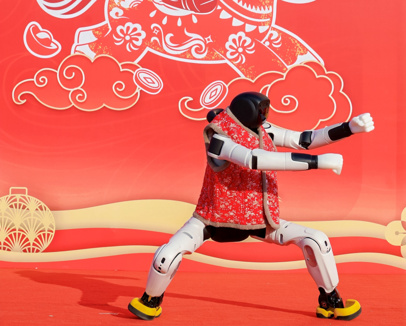 “村晚”舞台上,机器人为乡亲们带来了别具一格的太极拳表演,起势、野马分鬃、白鹤亮翅等招式行云流水,刚柔并济,赢得现场观众阵阵掌声。随后,机器人又与京东青春采销惊喜同台,跟着《快乐崇拜》《最炫民族风》的动感节拍欢快舞动,动作规整利落、卡点精准无误,用科技感与青春活力,为乡村晚会增添了别样精彩。