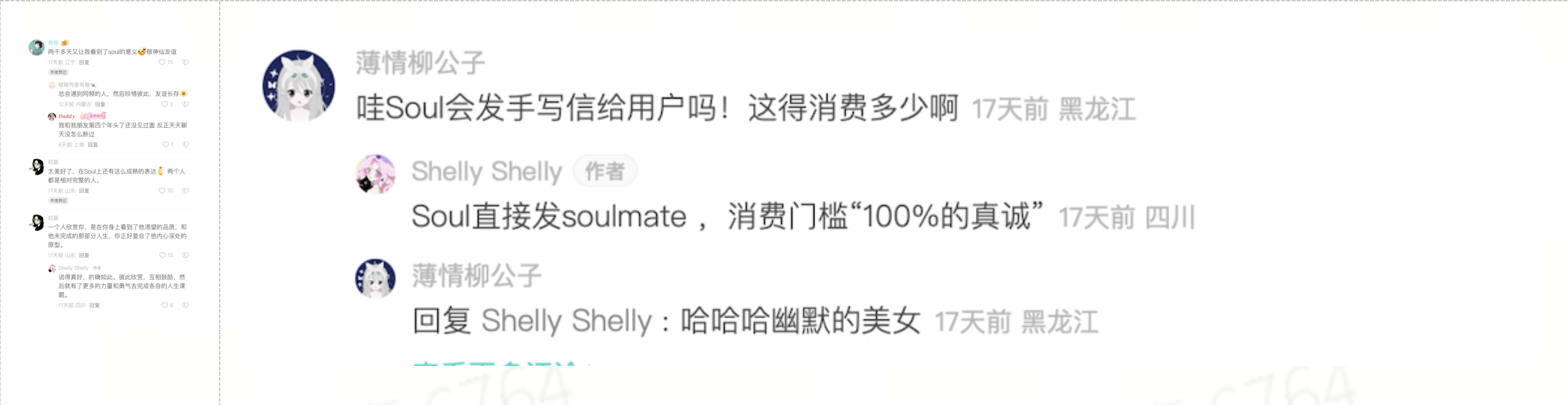 也有不明就里的 Souler 误以为是手写信是站内的消费返礼,询问花多少钱才能获得,Shelly的回复是“100%的真诚”——无所保留的真诚确实非常奢侈,只有内心富有的人才能承担。