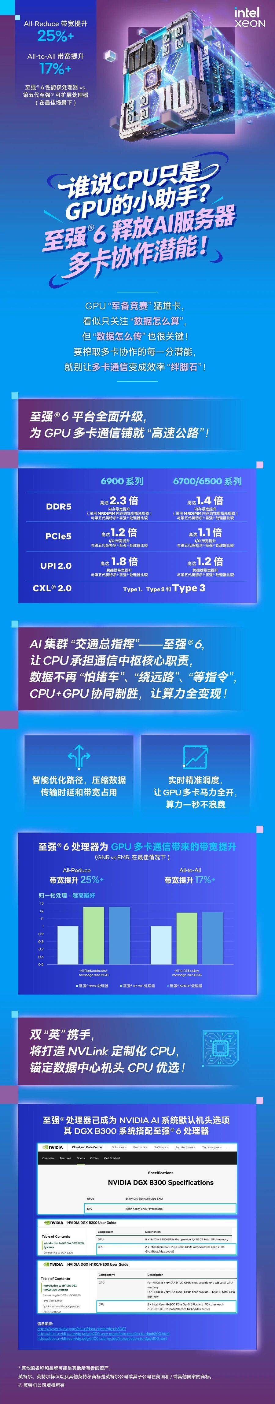 收益看到了,要付出什么也很清晰,也许你想进一步深究至强6提升多卡互连与通信效率的秘籍,那下面这一张图就足以揭示它的底气所在。