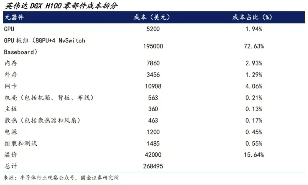 有趣的是,换来这些提升的成本,对整个AI服务器或集群的采购或总拥有成本来说,都是九牛一毛——援引国金证券研究所对英伟达DGX H100零部件成本的拆分,机头CPU成本占比只有1.94%。即便把成本拆分的目标换成定位中低端的AI服务器,GPU或AI加速器也依然是大头所在。相比之下,机头CPU虽然在投入上微不足道,却能扮演撬动整个系统或集群效率的“杠杆”,它能撬开、释放GPU和整个AI服务器的全部潜能,这才是真正意义上的花“小钱”、办“大事”。