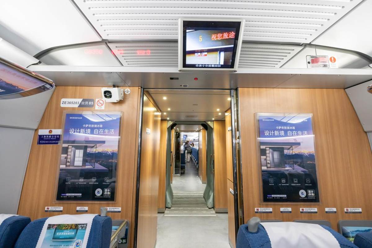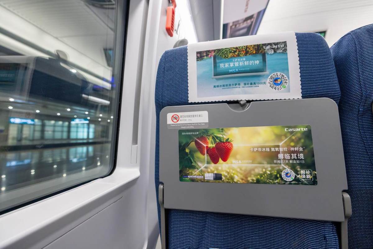 卡萨帝冰箱冠名的高铁专列,行程覆盖上海、北京、广州、成都等63座核心城市,经停107个车站,以“中国速度”串联起一条条春节返乡的温情路线。列车如同卡萨帝冰箱的主题长廊,从车身外观到车厢座椅,品牌元素无处不在。