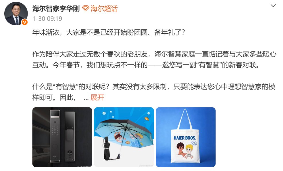 2 月 6 日,海尔智慧家庭全球对联征集画上句号。自 1 月 30 日启动以来,这场对联征集活动吸引了众多智能家居用户参与。大家在感受忙年的热闹氛围的同时,也让「把智慧生活写进对联」成为今年春节的新玩法。