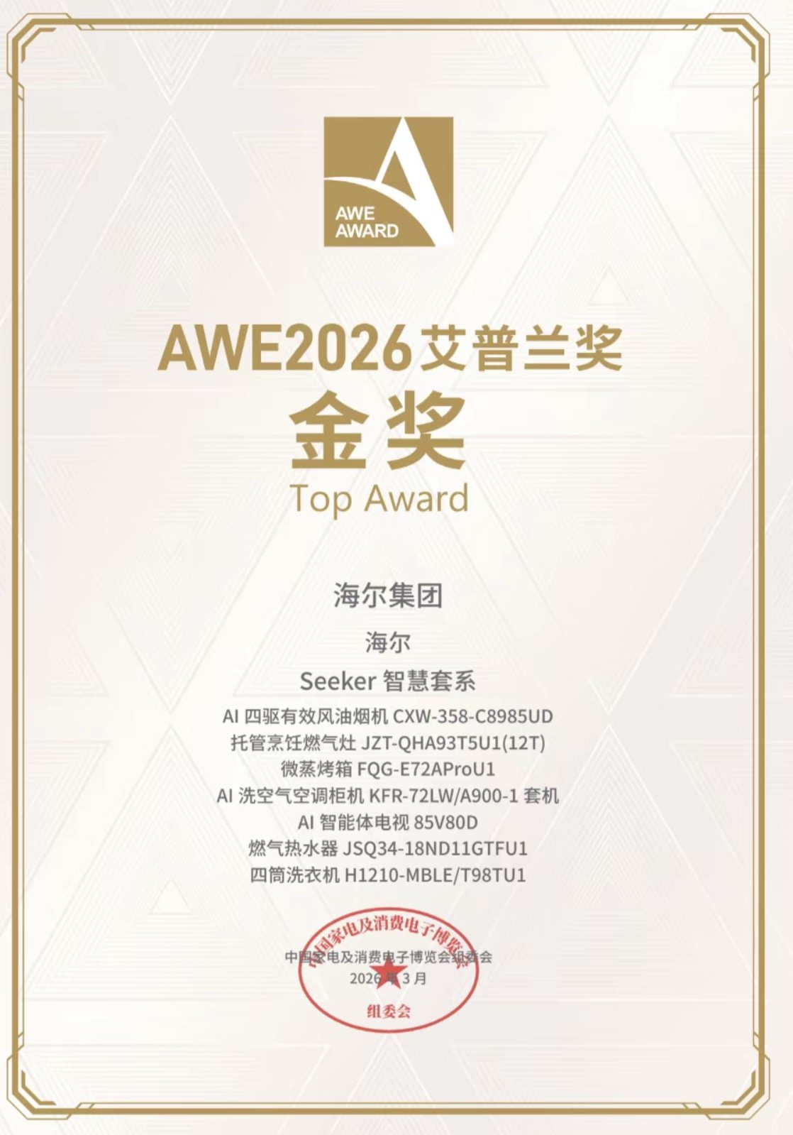 3月12日,中国家电及消费电子博览会(AWE)在上海新国际博览中心开幕。本次展会中,海尔智家发布了搭载AI之眼2.0科技的Seeker套系以及家庭机器人,进一步从家务中解放了用户双手。其中,海尔Seeker热水器就凭借AI无冷感恒温系统,从众多产品中脱颖而出斩获艾普兰奖。