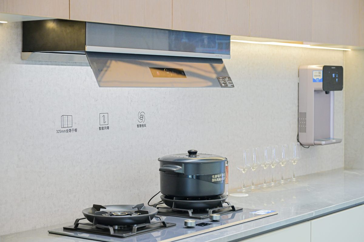 满足了装得好看,卡萨帝更没放过大家做饭时的那些细碎糟心事。例如炒菜时油烟四起,烟机总要手动调档;一边做饭一边要照顾孩子,又怕厨房溢锅,忙得手忙脚乱……这些看似不起眼的小麻烦,恰恰是很多人“不爱进厨房”的根源。