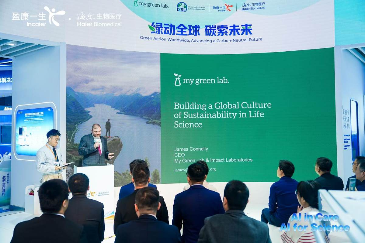 4月11日,在第93届中国国际医疗器械博览会(CMEF)现场,海尔生物医疗举办“绿动全球 碳索未来——Freezer Challenge中国行动暨全国首个绿色低碳实验室倡议仪式”活动,汇聚国际权威机构、行业专家与用户代表,共同推动中国实验室绿色低碳转型。